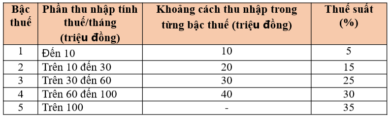 Về biểu thuế lũy tiến từng phần, Phương án Chính phủ đã đề xuất, báo cáo Quốc hội tại dự thảo Luật điều chỉnh Biểu thuế lũy tiến từng phần áp dụng đối với cá nhân cư trú có thu nhập từ tiền lương, tiền công theo hướng giảm số bậc thuế từ 7 bậc thành 5 bậc và nới rộng khoảng cách giữa các bậc như sau:
