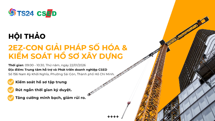 Việc chuyển đổi sang hồ sơ điện tử chính là chìa khóa giúp doanh nghiệp quản trị tập trung, loại bỏ tình trạng thất thoát dữ liệu và tối ưu hóa việc chia sẻ với đối tác. Thấu hiểu nhu cầu đó, Công ty Cổ phần TS24 phối hợp cùng Trung tâm Hỗ Trợ & Phát Triển Doanh Nghiệp (CSED) - Sở Công Thương TP. Hồ Chí Minh trân trọng kính mời Quý Doanh nghiệp tham dự hội thảo: