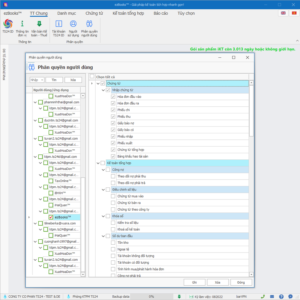 | Phân quyền người dùng nội bộ: phân quyền sử dụng phần mềm cho tài khoản đăng nhập nội bộ | - | ✔ |