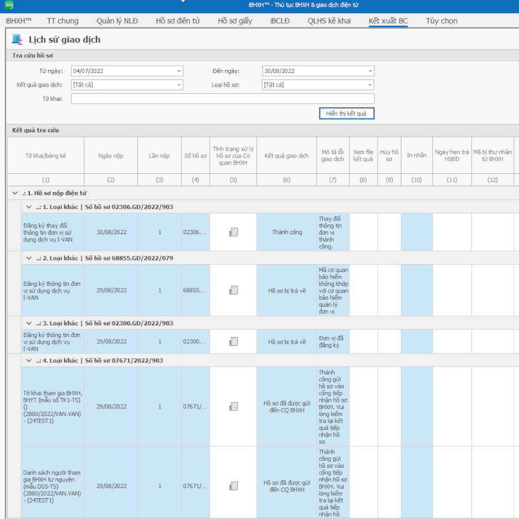 | Giao dịch hồ sơ BHXH điện tử qua dịch vụ I-VAN | ✔ | ✔ |